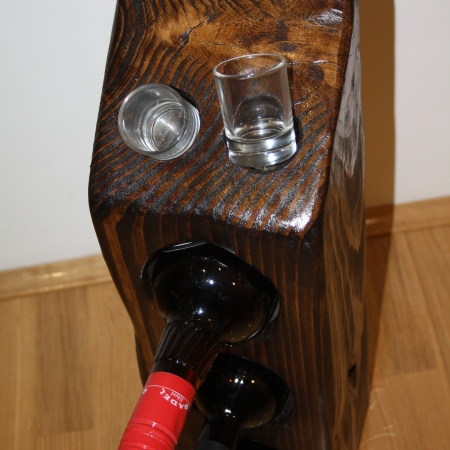 Wooden rack for 3 bottles and 2 glasses -